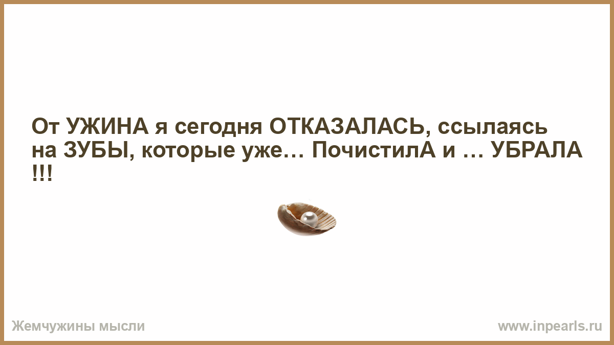 От УЖИНА я сегодня ОТКАЗАЛАСЬ, ссылаясь на ЗУБЫ, которые уже… ПочистилА и … УБРАЛА !!!