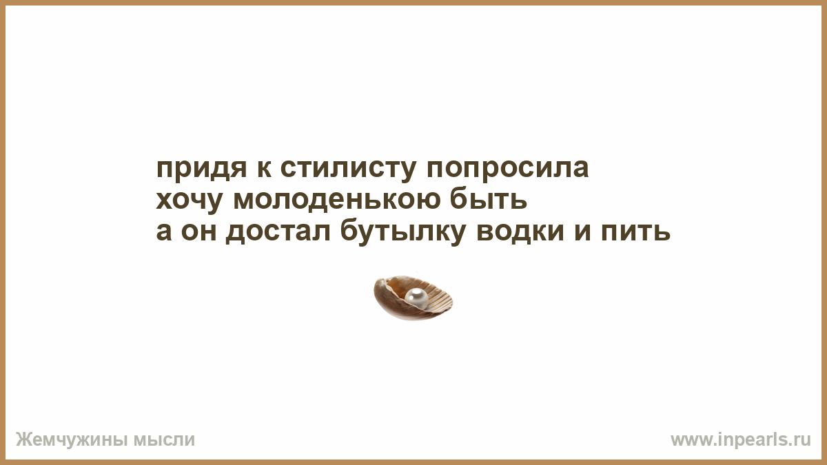 придя к стилисту попросила хочу молоденькою быть а он достал бутылку водки и пить