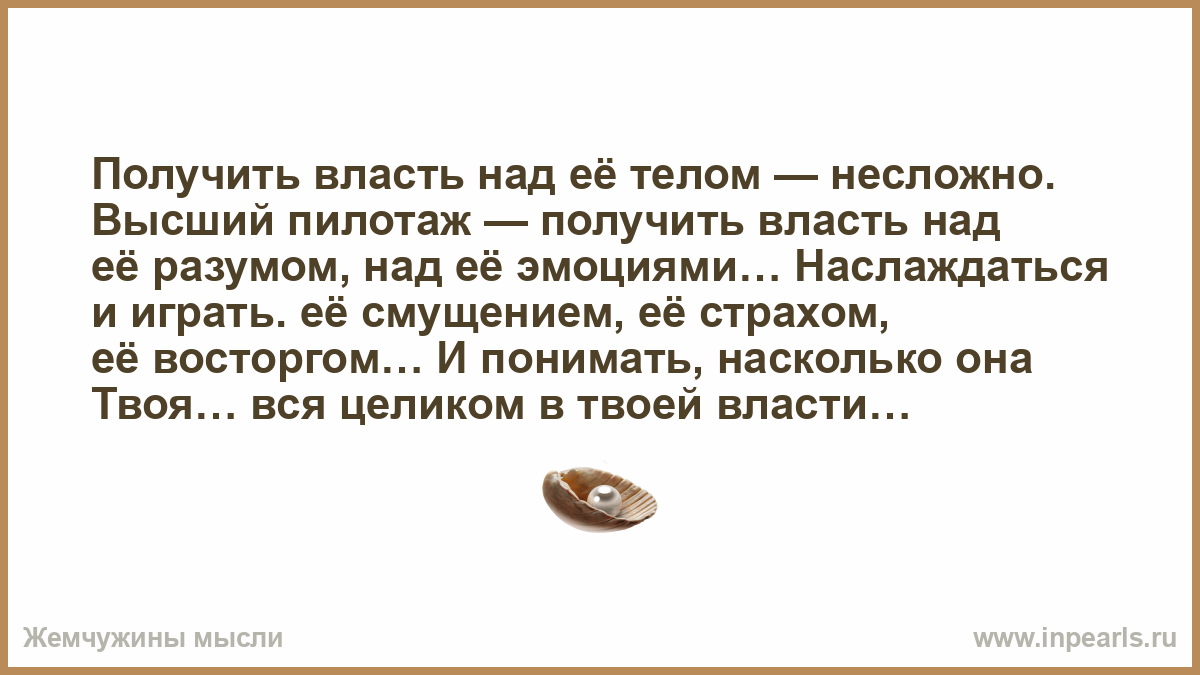 Однажды ты встретишь женщину, которая сожжет тебя изнутри. Влезет к тебе в душу и останется там жить. Твоё сердце будет изнывать, тело вспыхивать, а душа тлеть. Тебе захочется быть рядом с ней: обнимать, ласкать, быть её частью, а она будет причинять тебе боль, ломать, разрывать на части. Ты не сможешь уйти от неё или забыть, она будет преследовать тебя, и во сне, и наяву… Ты будешь искать её в толпе, надеяться, что придет, обнимет… Эмоции заполнят твою сущность, ты перестанешь адекватно мыслить. Она станет для тебя раем и адом на земле — твоей болью и твоей единственной любимой женщиной…