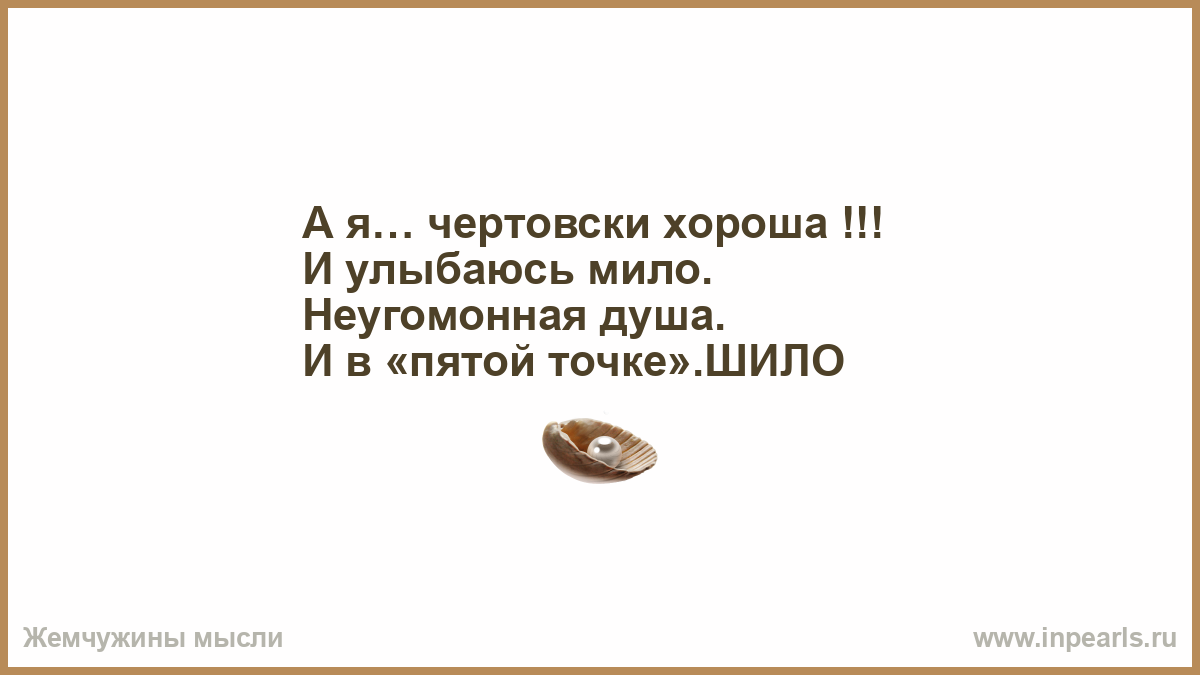 А я… чертовски хороша !!! И улыбаюсь мило. Неугомонная душа. И в «пятой точке».ШИЛО