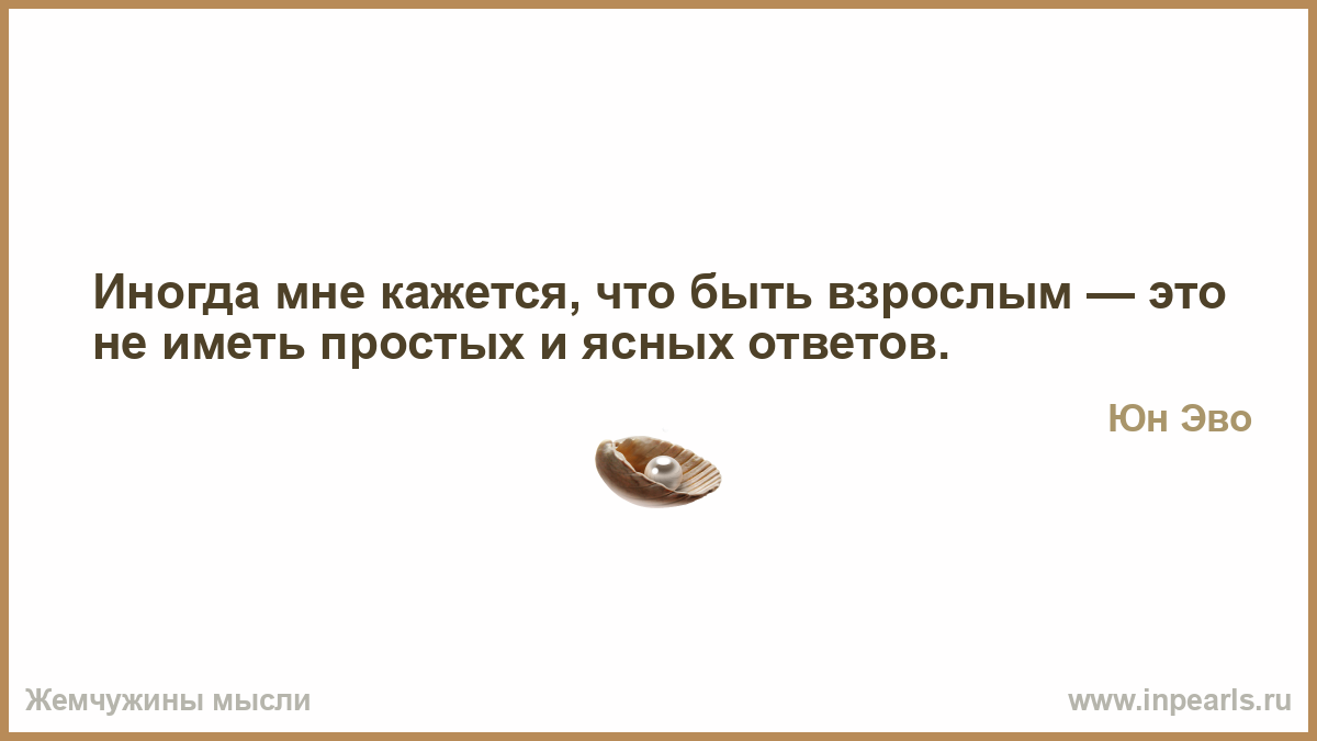 Иногда мне кажется, что быть взрослым — это не иметь простых и ясных ответов.