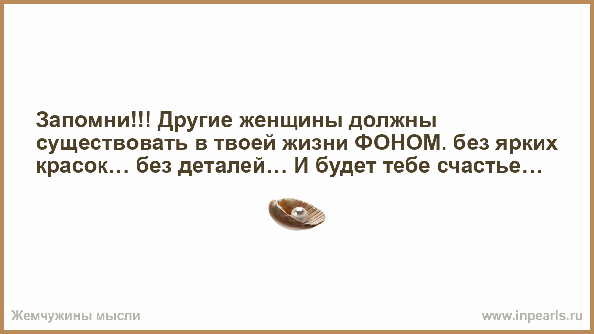 Запомни!!! Другие женщины должны существовать в твоей жизни ФОНОМ. без ярких красок… без деталей… И будет тебе счастье…