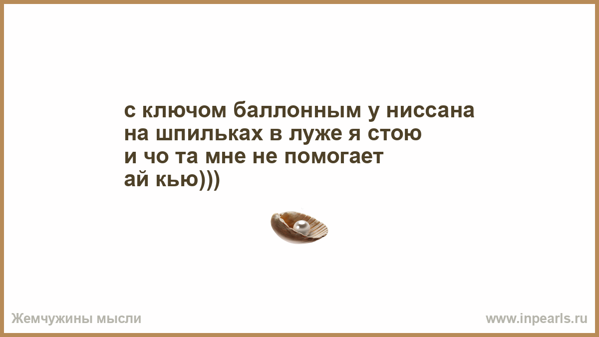 с ключом баллонным у ниссана на шпильках в луже я стою и чо та мне не помогает ай кью)))