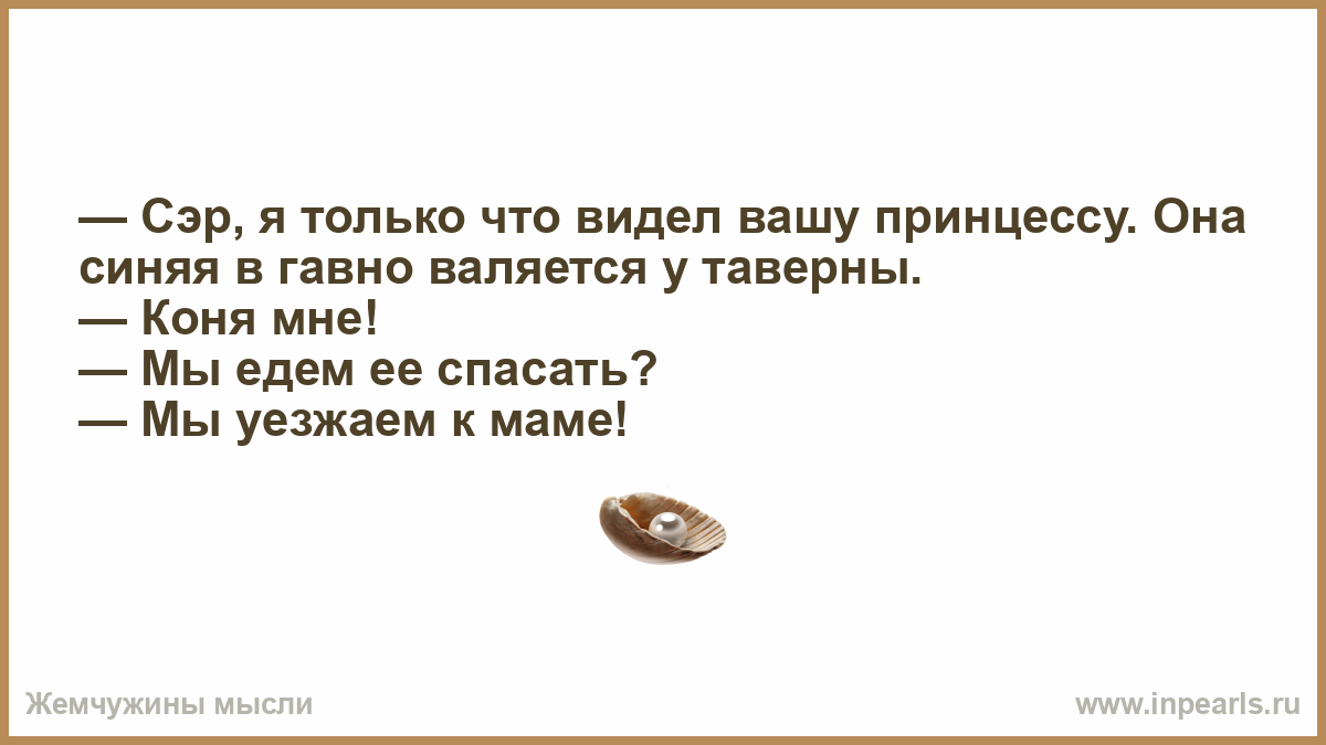 — Сэр, я только что видел вашу принцессу. Она синяя в гавно валяется у таверны.