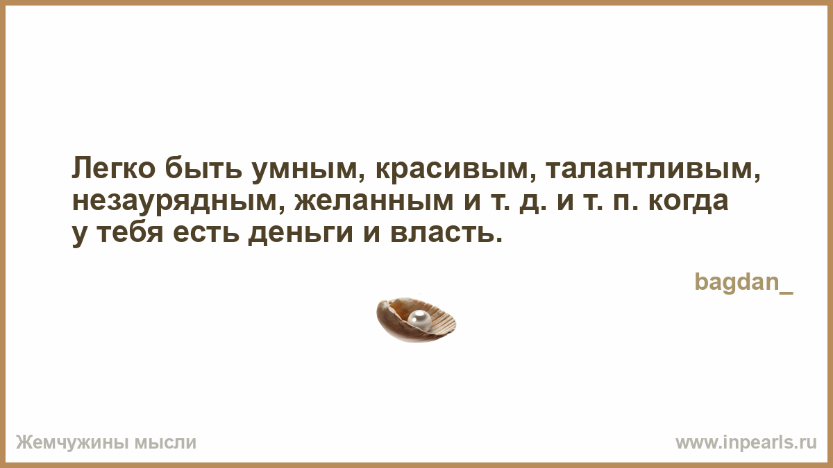 Легко быть умным, красивым, талантливым, незаурядным, желанным и т. д. и т. п. когда у тебя есть деньги и власть.