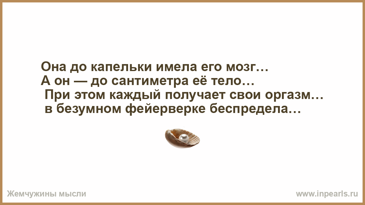 Однажды ты встретишь женщину, которая сожжет тебя изнутри. Влезет к тебе в душу и останется там жить. Твоё сердце будет изнывать, тело вспыхивать, а душа тлеть. Тебе захочется быть рядом с ней: обнимать, ласкать, быть её частью, а она будет причинять тебе боль, ломать, разрывать на части. Ты не сможешь уйти от неё или забыть, она будет преследовать тебя, и во сне, и наяву… Ты будешь искать её в толпе, надеяться, что придет, обнимет… Эмоции заполнят твою сущность, ты перестанешь адекватно мыслить. Она станет для тебя раем и адом на земле — твоей болью и твоей единственной любимой женщиной…