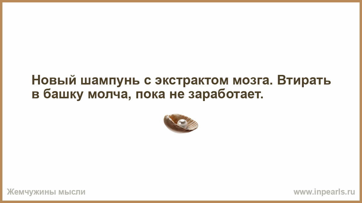 Новый шампунь с экстрактом мозга. Втирать в башку молча, пока не заработает.