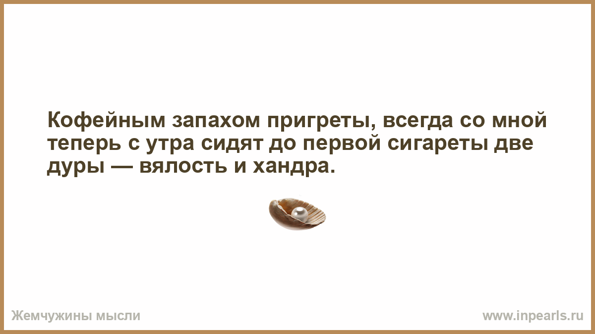 Кофейным запахом пригреты, всегда со мной теперь с утра сидят до первой сигареты две дуры — вялость и хандра.