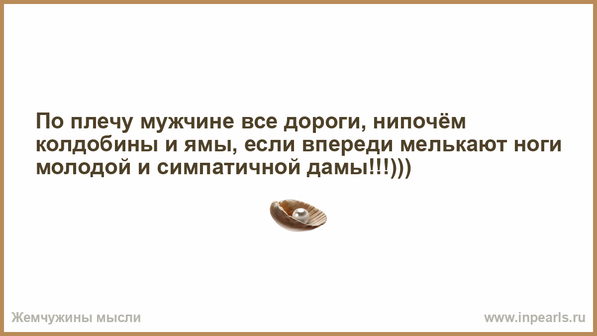 По плечу мужчине все дороги, нипочём колдобины и ямы, если впереди мелькают ноги молодой и симпатичной дамы!!!)))