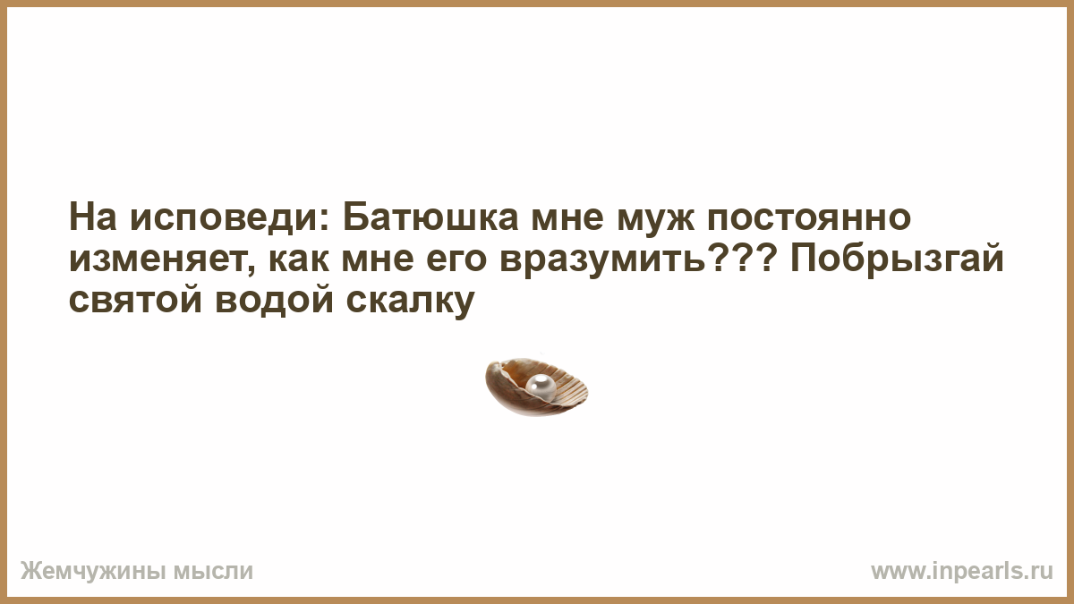 На исповеди: Батюшка мне муж постоянно изменяет, как мне его вразумить??? Побрызгай святой водой скалку