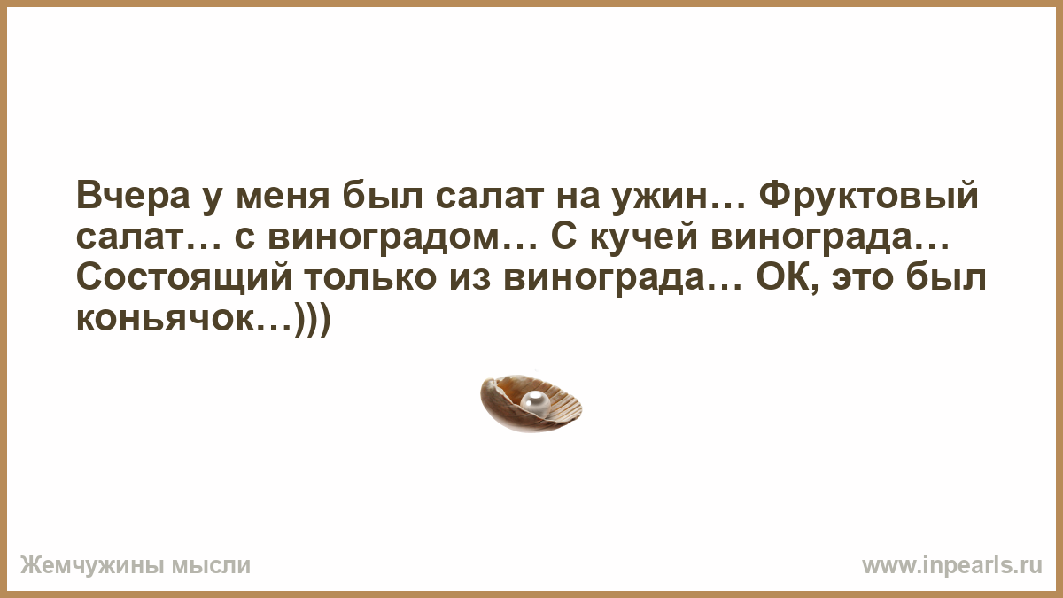 Вчера у меня был салат на ужин… Фруктовый салат… с виноградом… С кучей винограда… Состоящий только из винограда… ОК, это был коньячок…)))