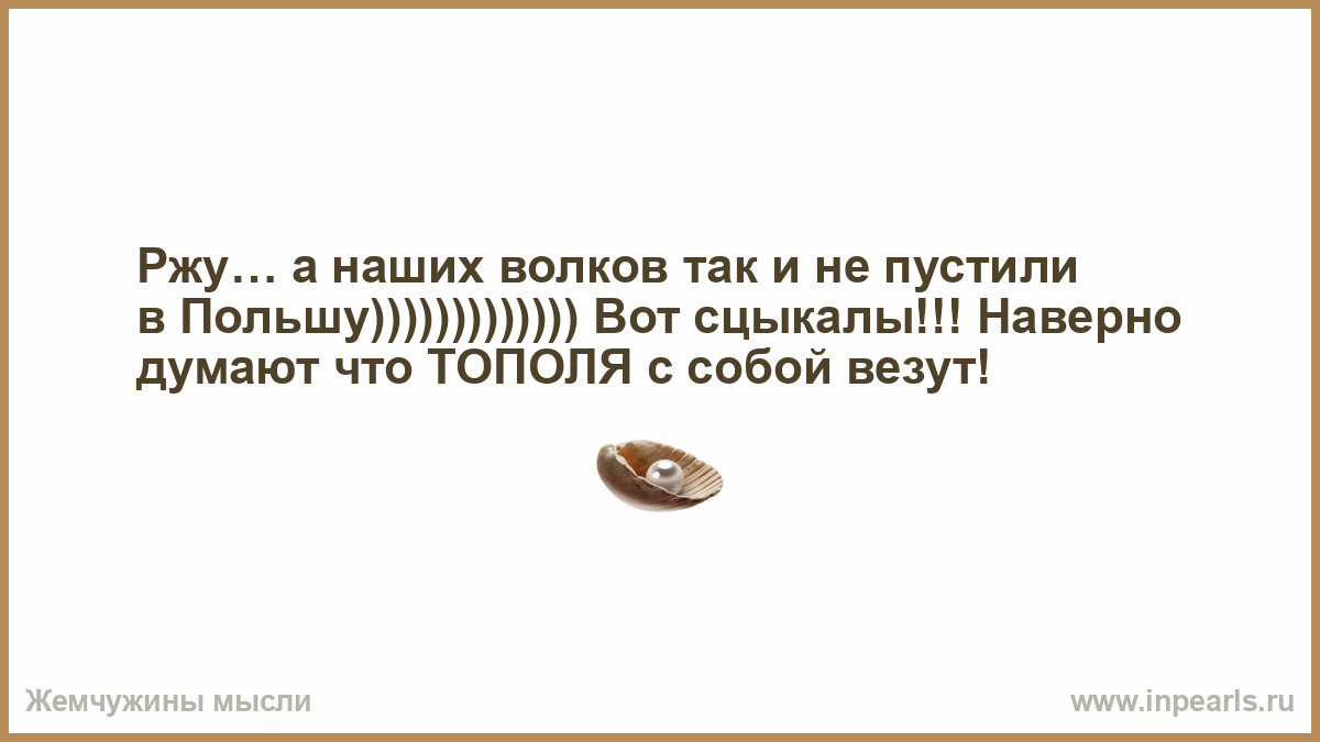 Ржу… а наших волков так и не пустили в Польшу))))))))))))) Вот сцыкалы!!! Наверно думают что ТОПОЛЯ с собой везут!