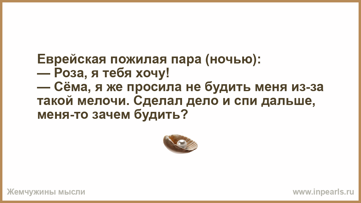 — Сёма, я же просила не будить меня из-за такой мелочи. Сделал дело и спи дальше, меня-то зачем будить?