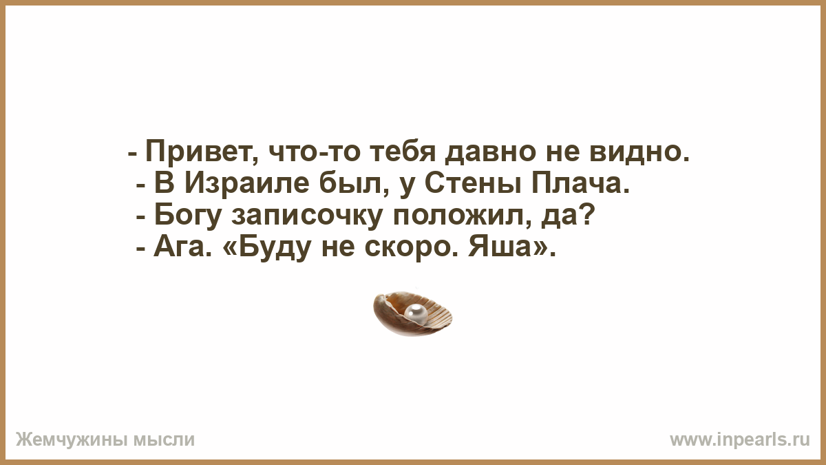 В школе у первоклашек учительница проводит урок по атеистическому воспитанию. Она пояснила детям, что бога нет, что его попы и буржуи придумали, чтобы им было легче рабочий класс эксплуатировать. В конце урока следует закрепление пройденного материала. Учительница просит малышей: «Ну что, дети, все поняли, что Бога нет?». Ребятишки подтверждают: «Поняли!» — «А теперь, дети, сложите ваши пальчики вот так (учительница показывает фигу) и поднимите ваши руки к верху!». Все дети это делают, и только один мальчик остается сидеть как прежде. — «Ванечка, а ты почему руку не поднял?» — «Так Марьванна, если там никого нет, то кому мы все это показываем?!».