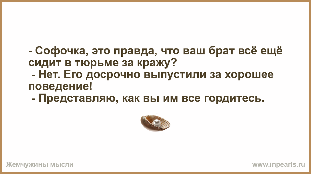 - Софочка, это правда, что ваш брат всё ещё сидит в тюрьме за кражу?