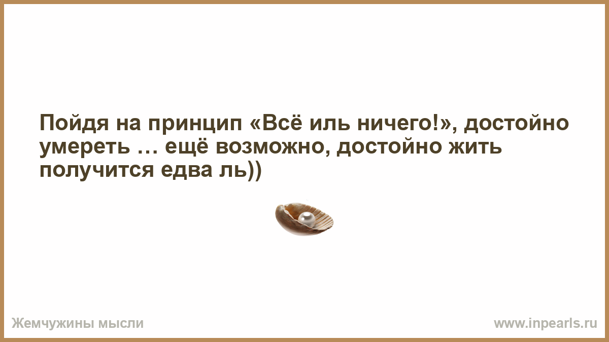Пойдя на принцип «Всё иль ничего!», достойно умереть … ещё возможно, достойно жить получится едва ль))