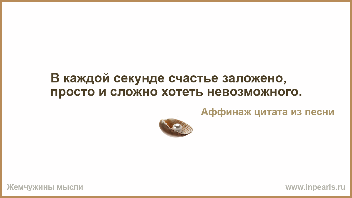 В каждой секунде счастье заложено, просто и сложно хотеть невозможного.