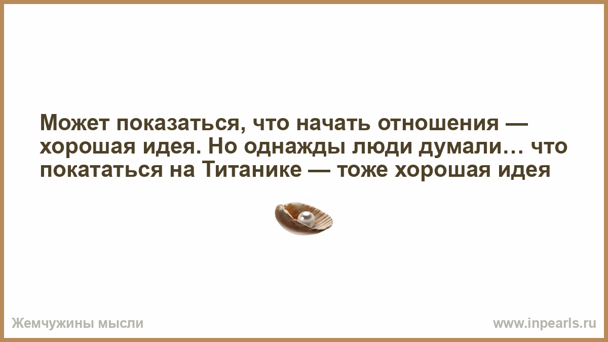 Может показаться, что начать отношения — хорошая идея. Но однажды люди думали… что покататься на Титанике — тоже хорошая идея