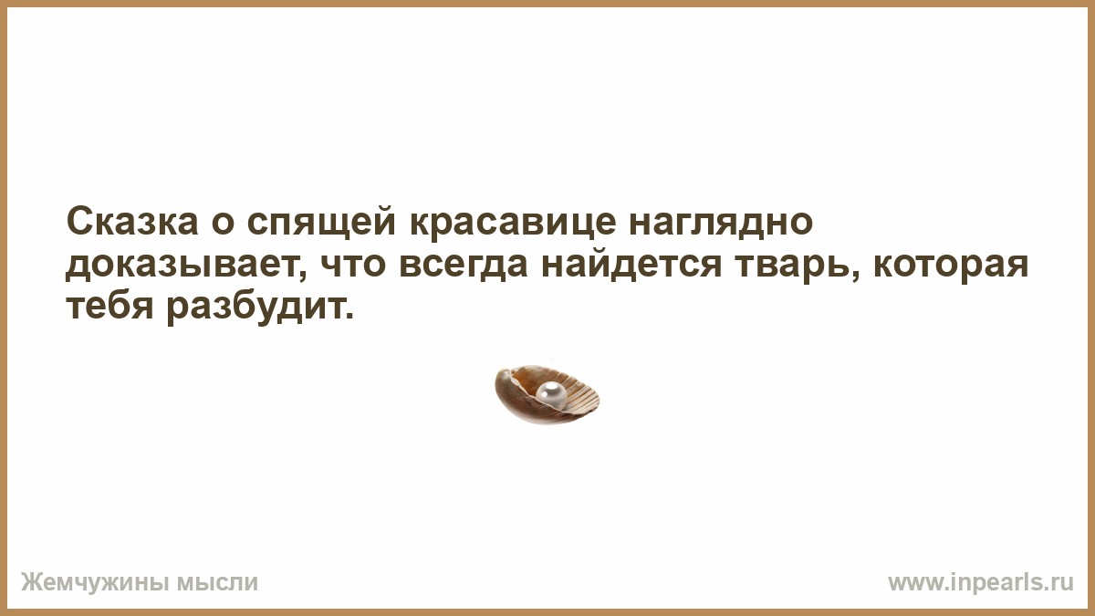 Сказка о спящей красавице наглядно доказывает, что всегда найдется тварь, которая тебя разбудит.
