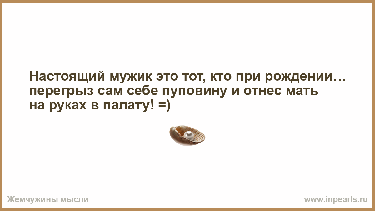 Настоящий мужик это тот, кто при рождении… перегрыз сам себе пуповину и отнес мать на руках в палату! =)