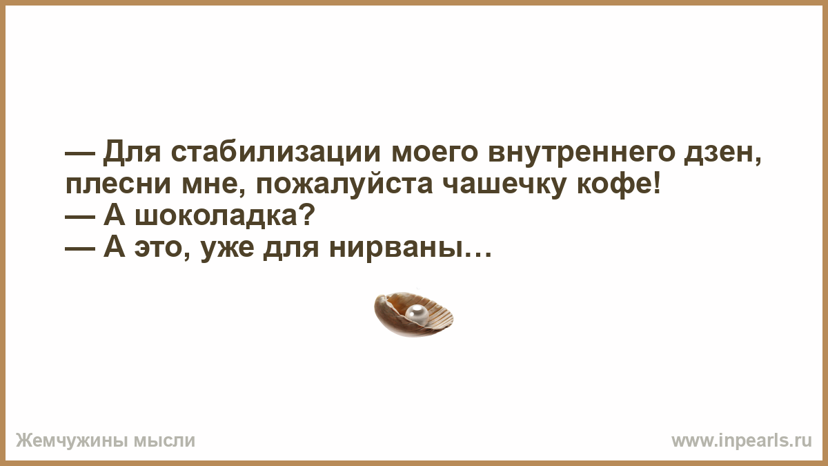— Для стабилизации моего внутреннего дзен, плесни мне, пожалуйста чашечку кофе! — А шоколадка? — А это, уже для нирваны…