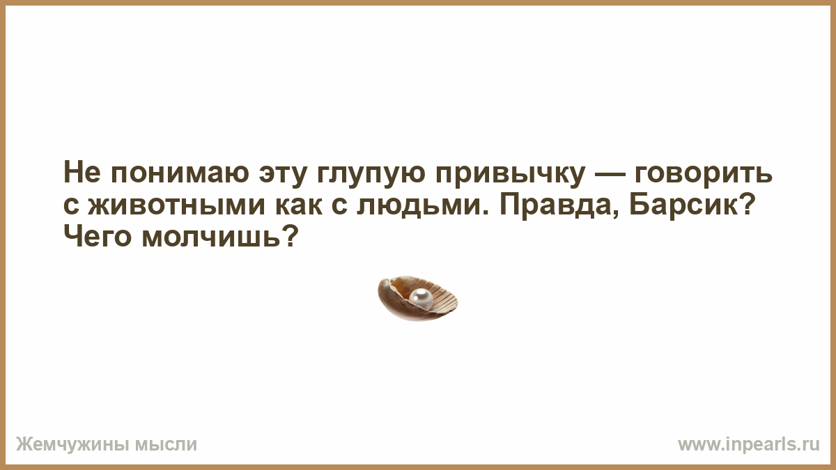 Не понимаю эту глупую привычку — говорить с животными как с людьми. Правда, Барсик? Чего молчишь?