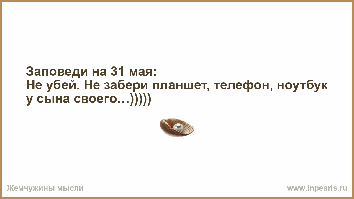 Заповеди на 31 мая: Не убей. Не забери планшет, телефон, ноутбук у сына своего…)))))