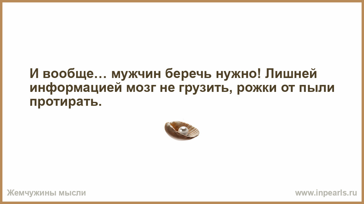 И вообще… мужчин беречь нужно! Лишней информацией мозг не грузить, рожки от пыли протирать.