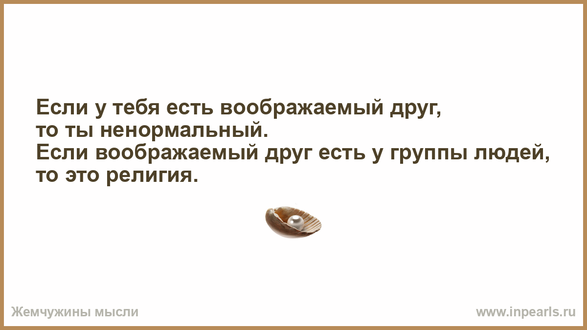 Если у тебя есть воображаемый друг, то ты ненормальный. Если воображаемый друг есть у группы людей, то это религия.