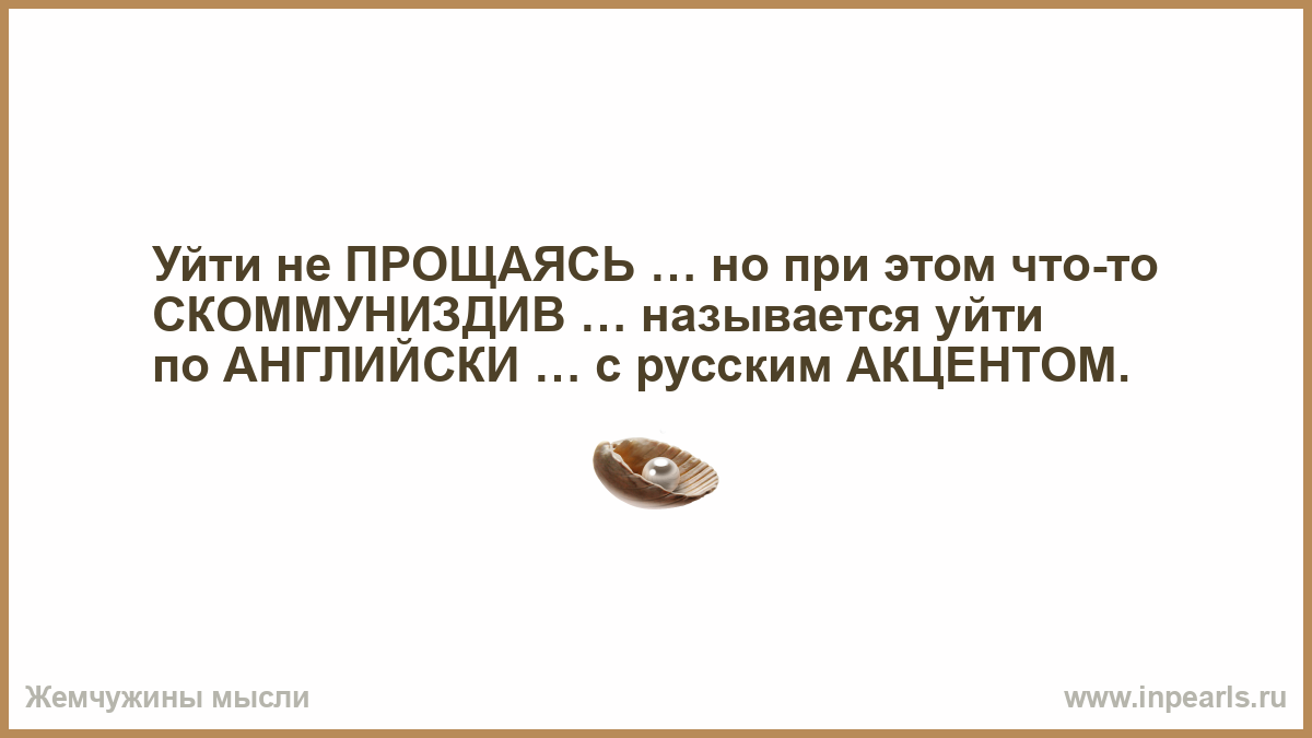 Уйти не ПРОЩАЯСЬ … но при этом что-то СКОММУНИЗДИВ … называется уйти по АНГЛИЙСКИ … с русским АКЦЕНТОМ.