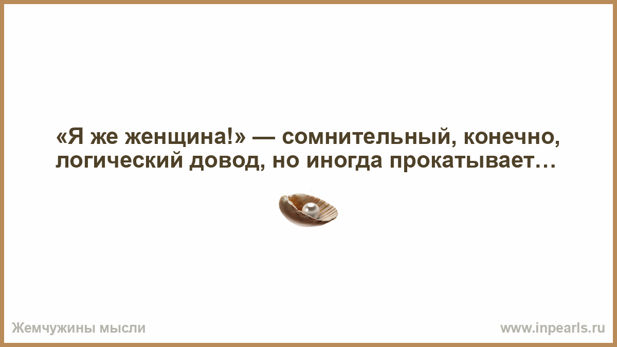 «Я же женщина!» — сомнительный, конечно, логический довод, но иногда прокатывает…