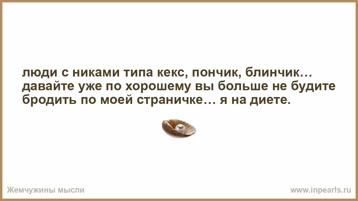 люди с никами типа кекс, пончик, блинчик… давайте уже по хорошему вы больше не будите бродить по моей страничке… я на диете.