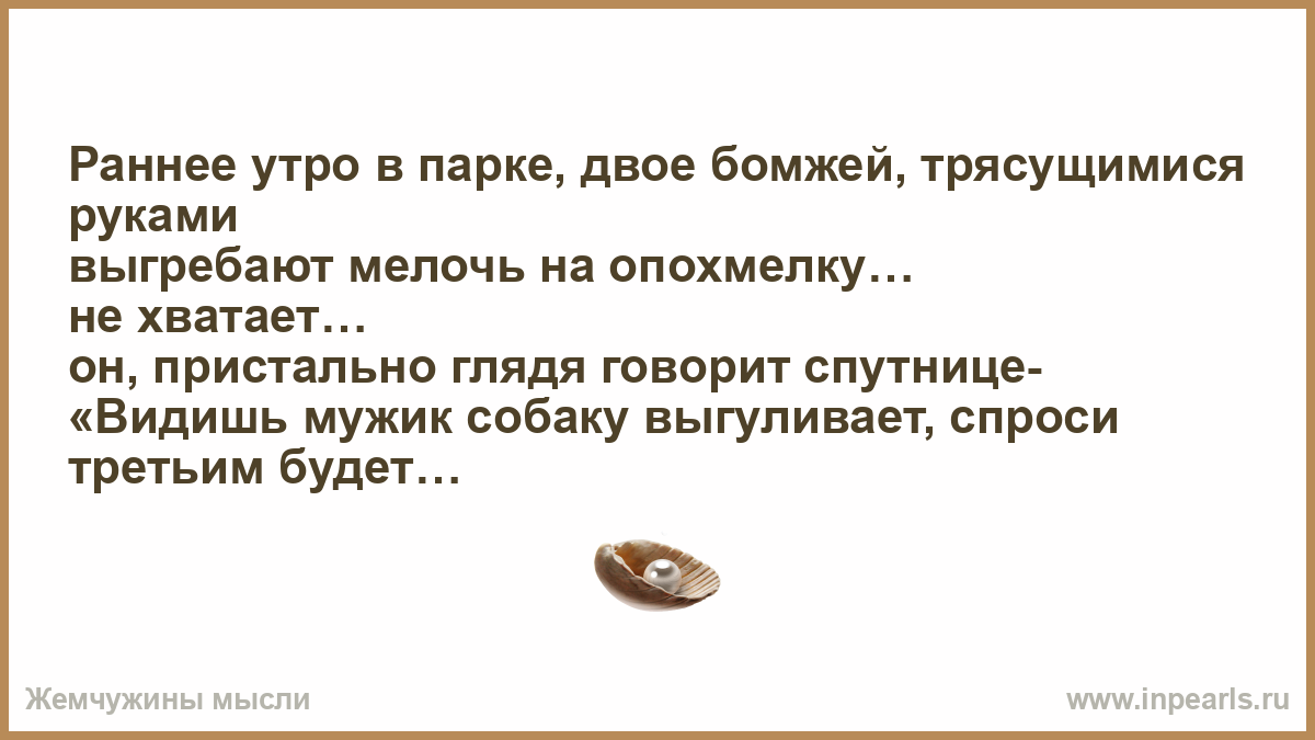 Раннее утро в парке, двое бомжей, трясущимися руками
