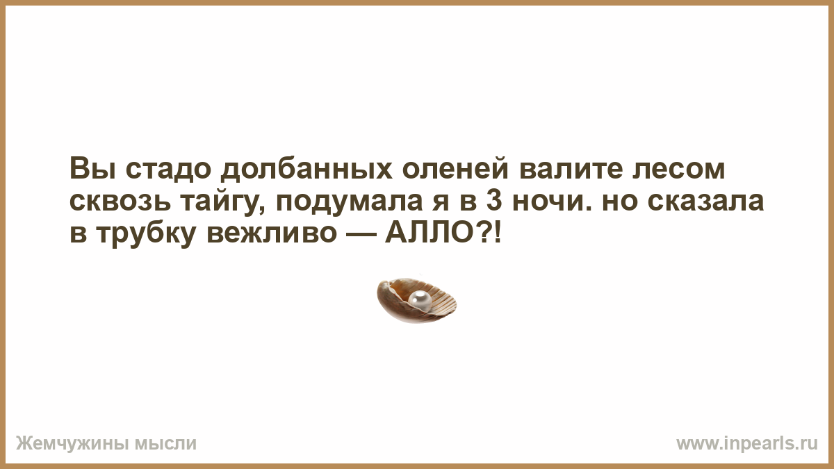 Вы стадо долбанных оленей валите лесом сквозь тайгу, подумала я в 3 ночи. но сказала в трубку вежливо — АЛЛО?!