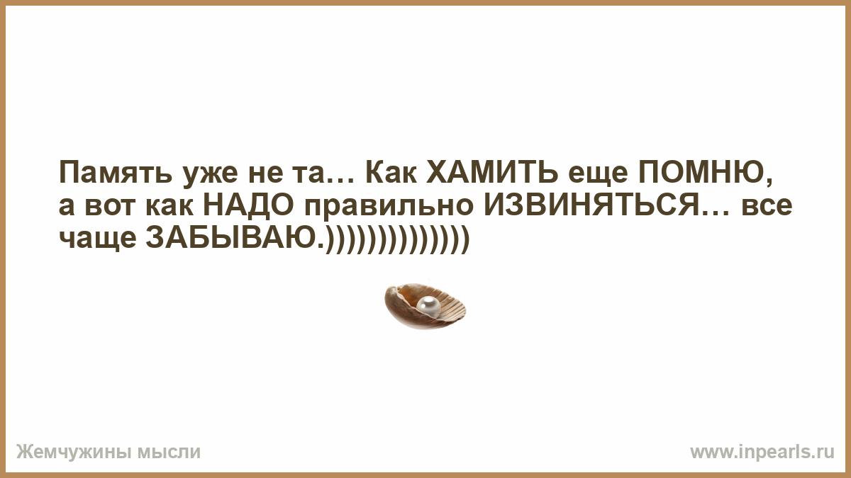 Память уже не та… Как ХАМИТЬ еще ПОМНЮ, а вот как НАДО правильно ИЗВИНЯТЬСЯ… все чаще ЗАБЫВАЮ.))))))))))))))