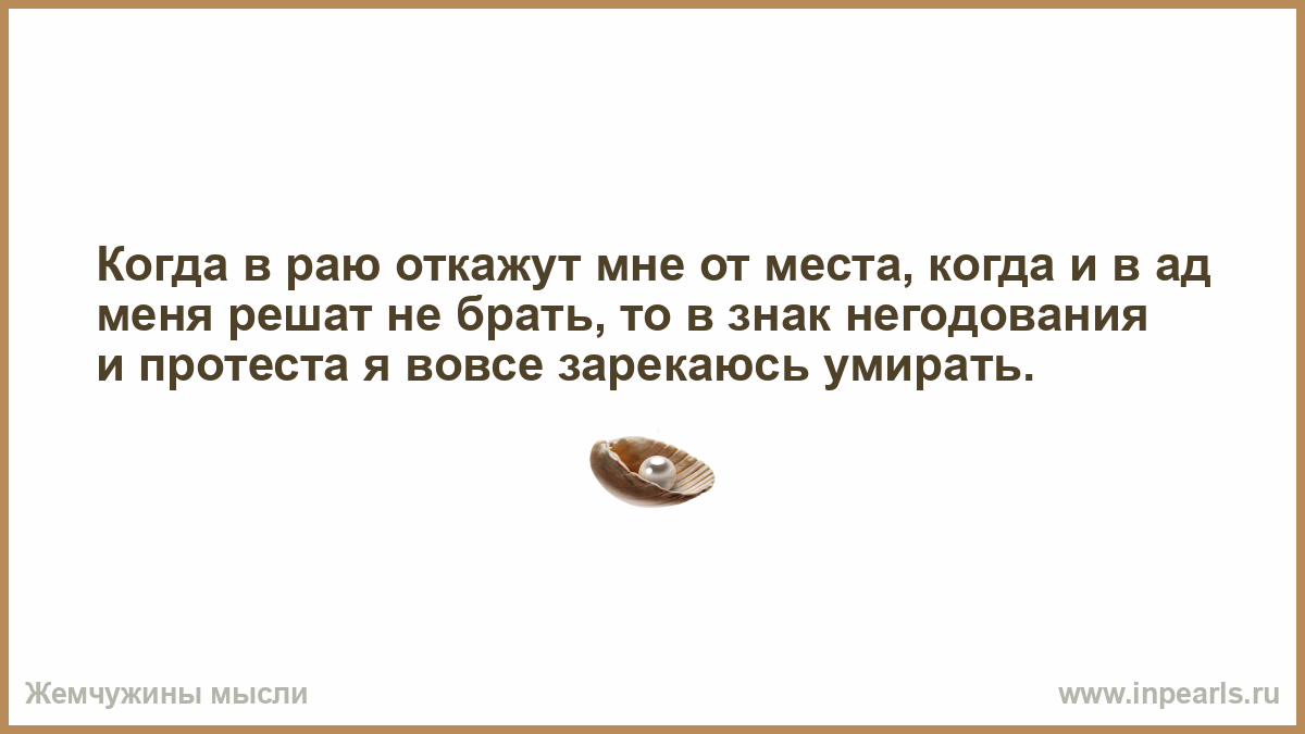 Когда в раю откажут мне от места, когда и в ад меня решат не брать, то в знак негодования и протеста я вовсе зарекаюсь умирать.