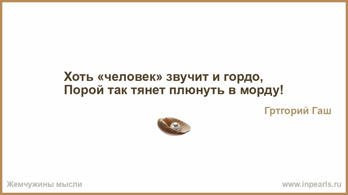 Хоть «человек» звучит и гордо, Порой так тянет плюнуть в морду!
