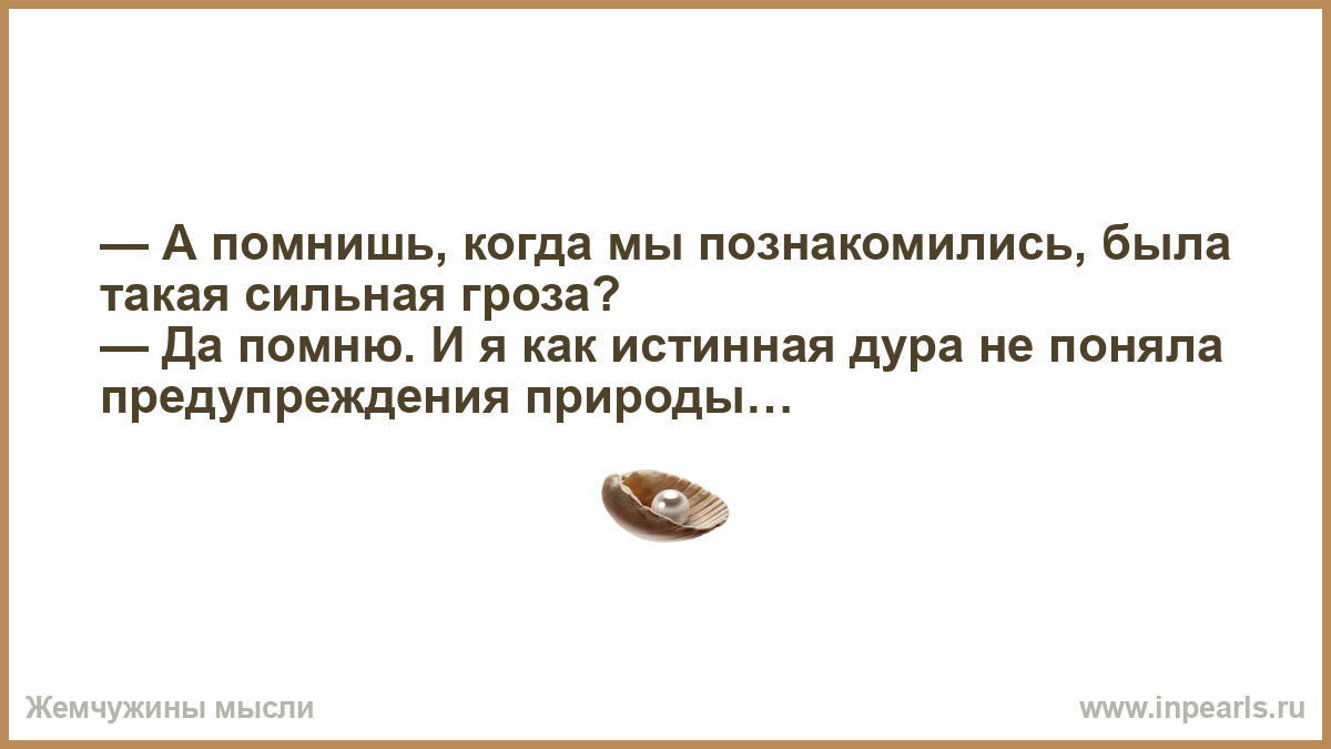 — А помнишь, когда мы познакомились, была такая сильная гроза?