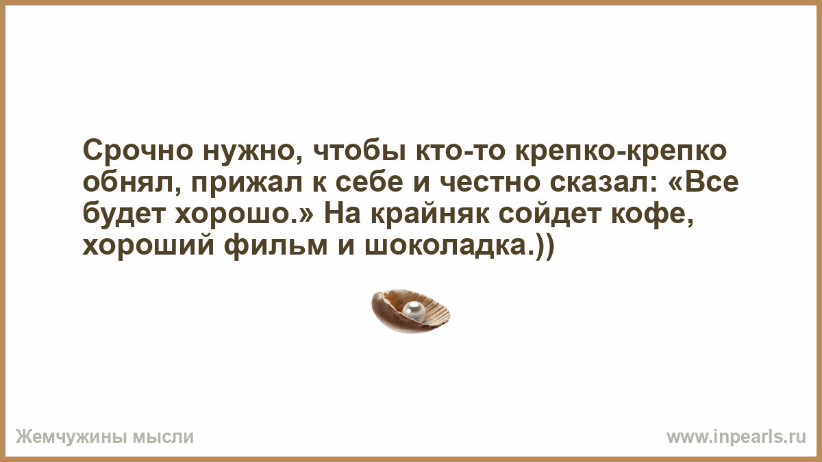 Срочно нужно, чтобы кто-то крепко-крепко обнял, прижал к себе и честно сказал: «Все будет хорошо.» На крайняк сойдет кофе, хороший фильм и шоколадка.))