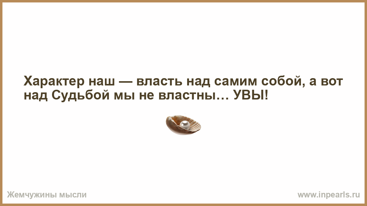 Характер наш — власть над самим собой, а вот над Судьбой мы не властны… УВЫ!