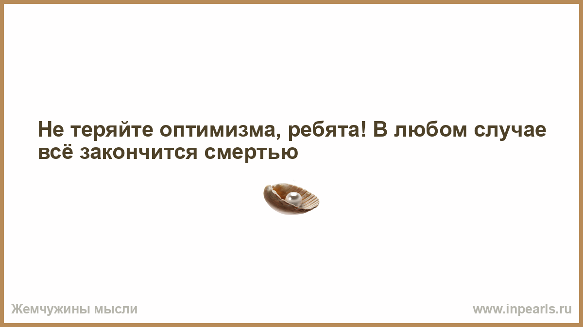 Не теряйте оптимизма, ребята! В любом случае всё закончится смертью