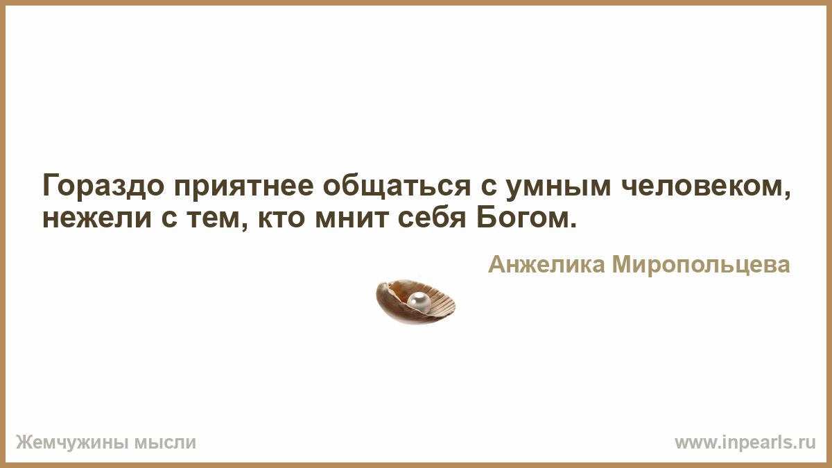Гораздо приятнее общаться с умным человеком, нежели с тем, кто мнит себя Богом.