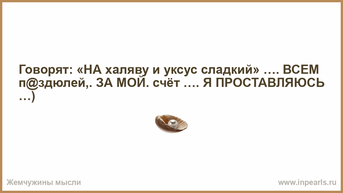 Говорят: «НА халяву и уксус сладкий» …. ВСЕМ п@здюлей,. ЗА МОЙ. счёт …. Я ПРОСТАВЛЯЮСЬ …)