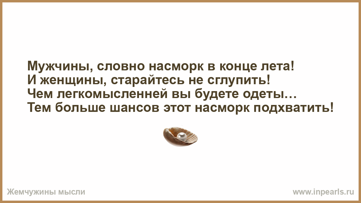Мужчины, словно насморк в конце лета! И женщины, старайтесь не сглупить! Чем легкомысленней вы будете одеты… Тем больше шансов этот насморк подхватить!