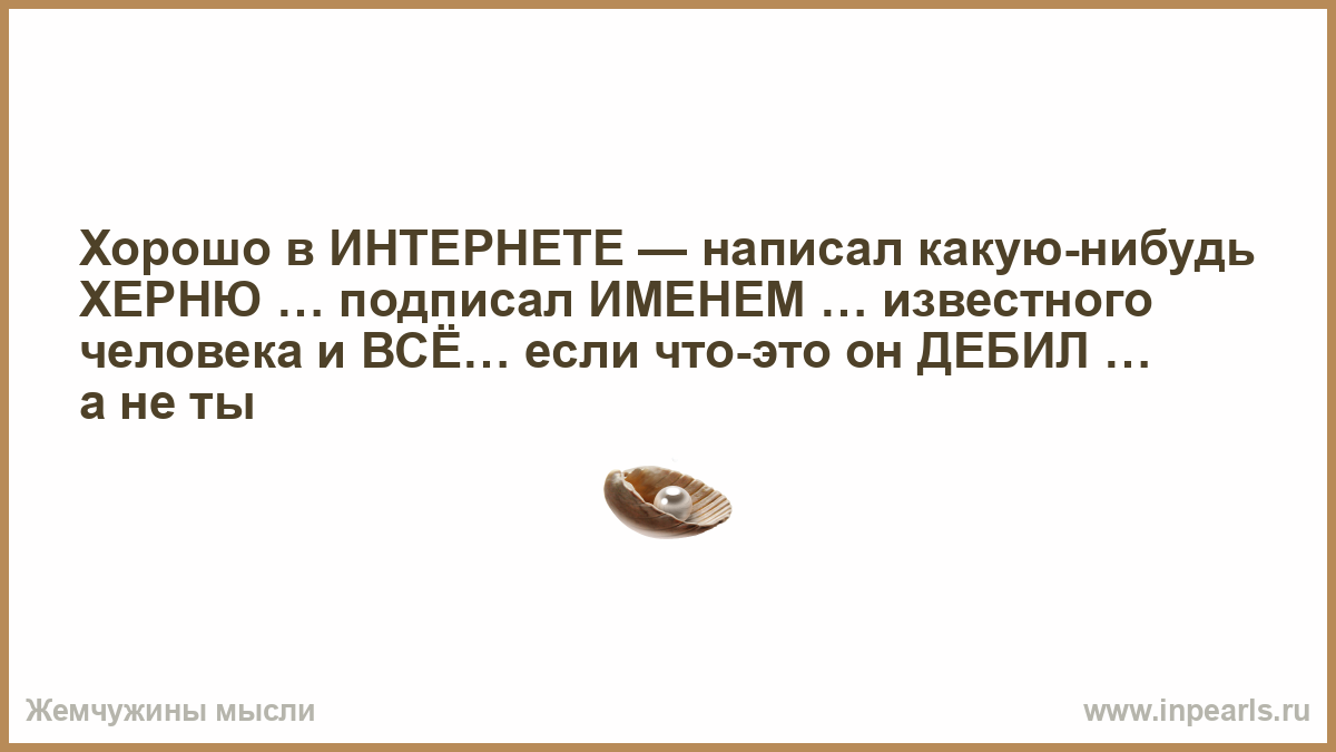 Хорошо в ИНТЕРНЕТЕ — написал какую-нибудь ХЕРНЮ … подписал ИМЕНЕМ … известного человека и ВСЁ… если что-это он ДЕБИЛ … а не ты