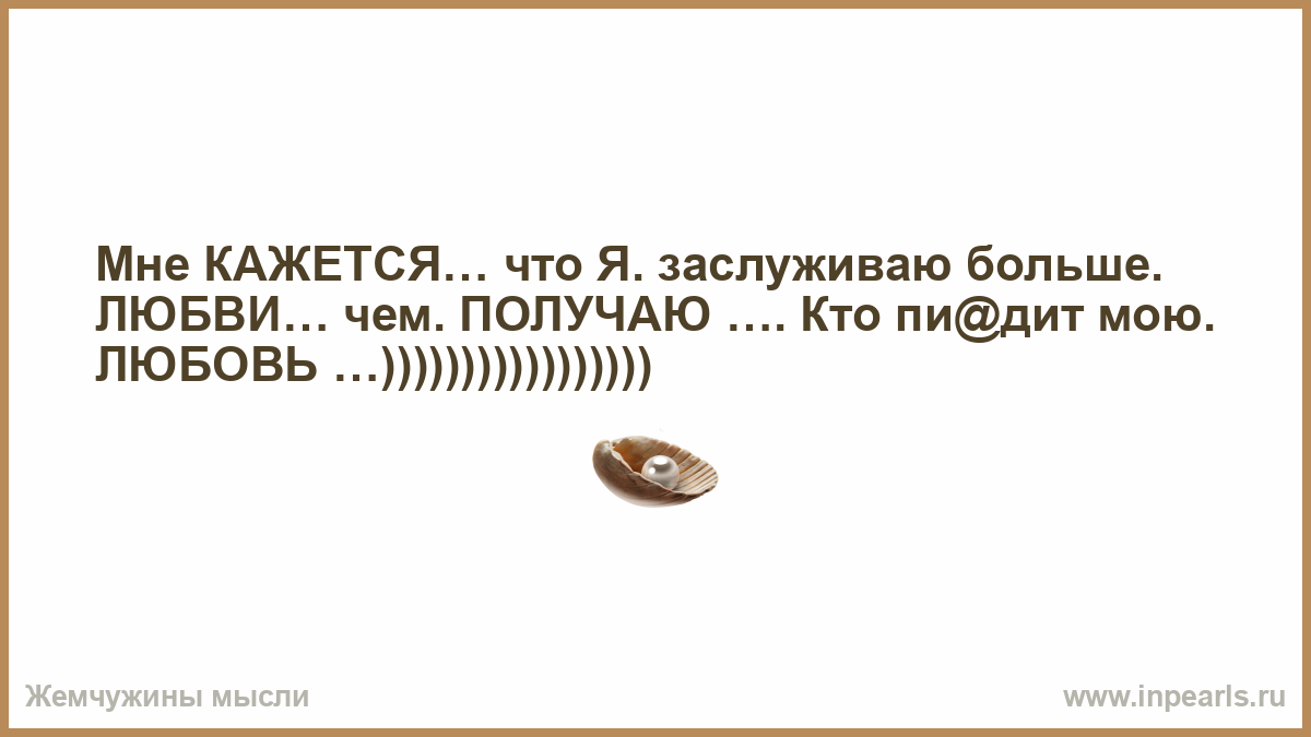 Мне КАЖЕТСЯ… что Я. заслуживаю больше. ЛЮБВИ… чем. ПОЛУЧАЮ …. Кто пи@дит мою. ЛЮБОВЬ …)))))))))))))))))