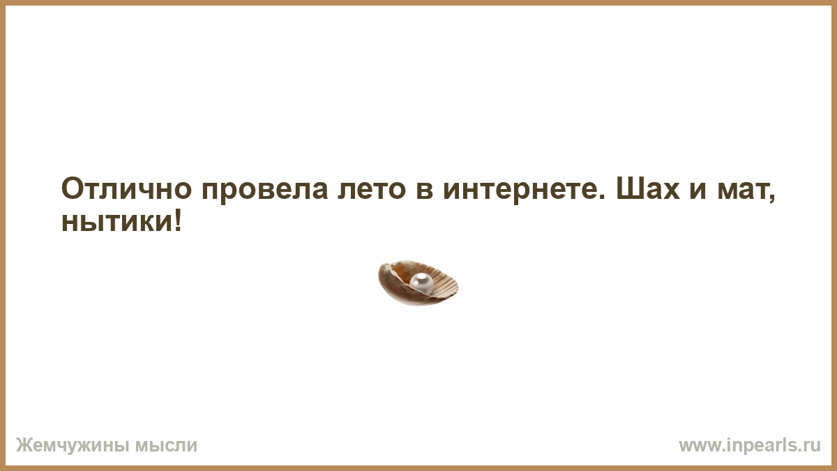 Отлично провела лето в интернете. Шах и мат, нытики!