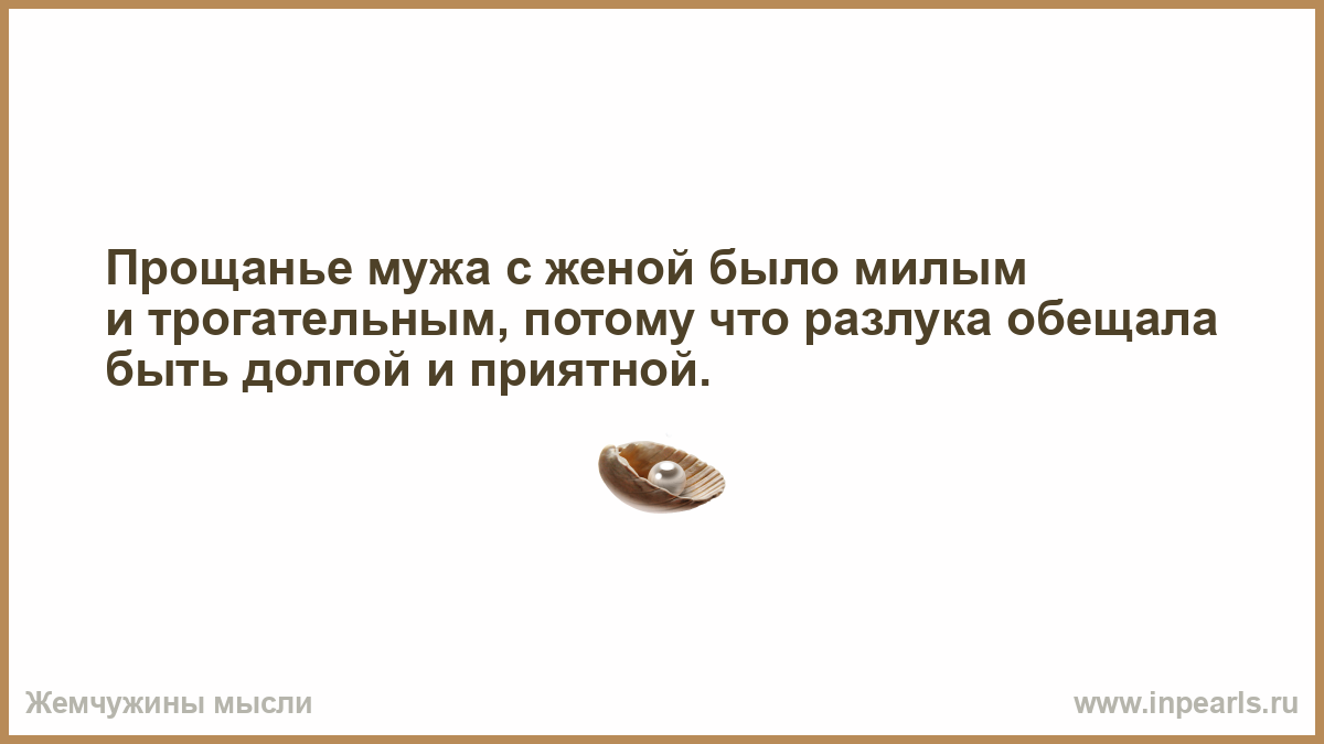 Прощанье мужа с женой было милым и трогательным, потому что разлука обещала быть долгой и приятной.