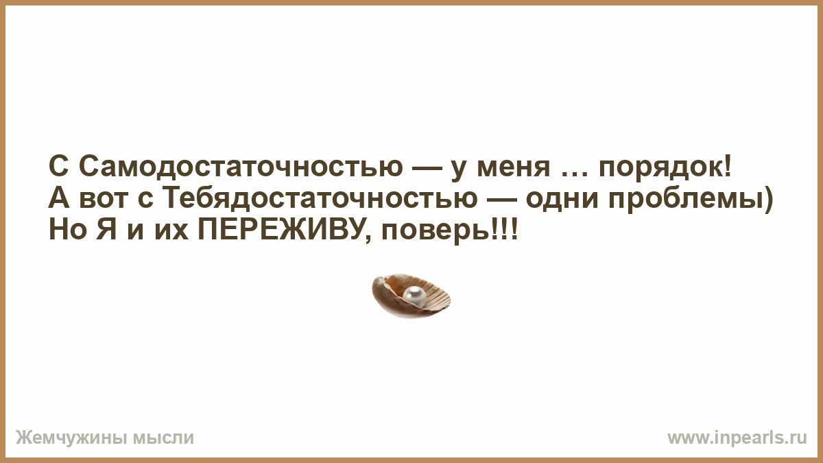 С Самодостаточностью — у меня … порядок! А вот с Тебядостаточностью — одни проблемы) Но Я и их ПЕРЕЖИВУ, поверь!!!