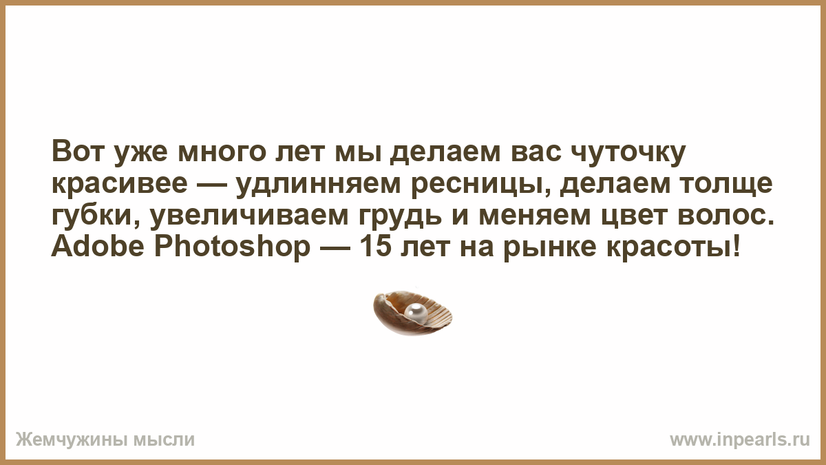 Вот уже много лет мы делаем вас чуточку красивее — удлинняем ресницы, дeлаем толще губки, увеличиваем грудь и меняем цвет волос. Adobe Photoshop — 15 лет на рынке красоты!